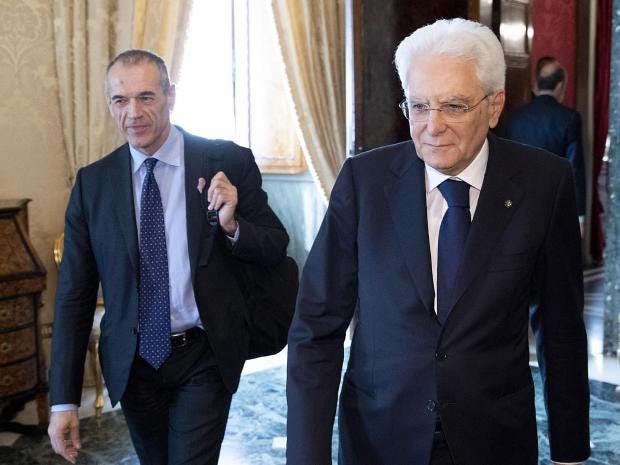 Carlo Cottarelli, a former International Monetary Fund (IMF) official, was asked to form a technocratic government after an attempt by two populist parties to form a government fell apart.