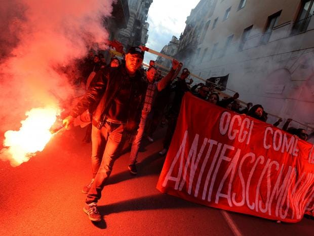 In Milan yesterday League leader and premier candidate, Matteo Salvini, denied that his followers advocated violence. Instead he denounced what he called “this angry anti-fascism” and declared fascism a dead ideology.