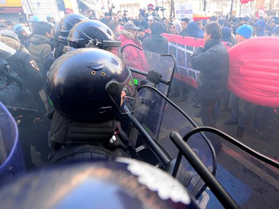 Across town, another march protested against government labour changes that made it easier to lay off workers.