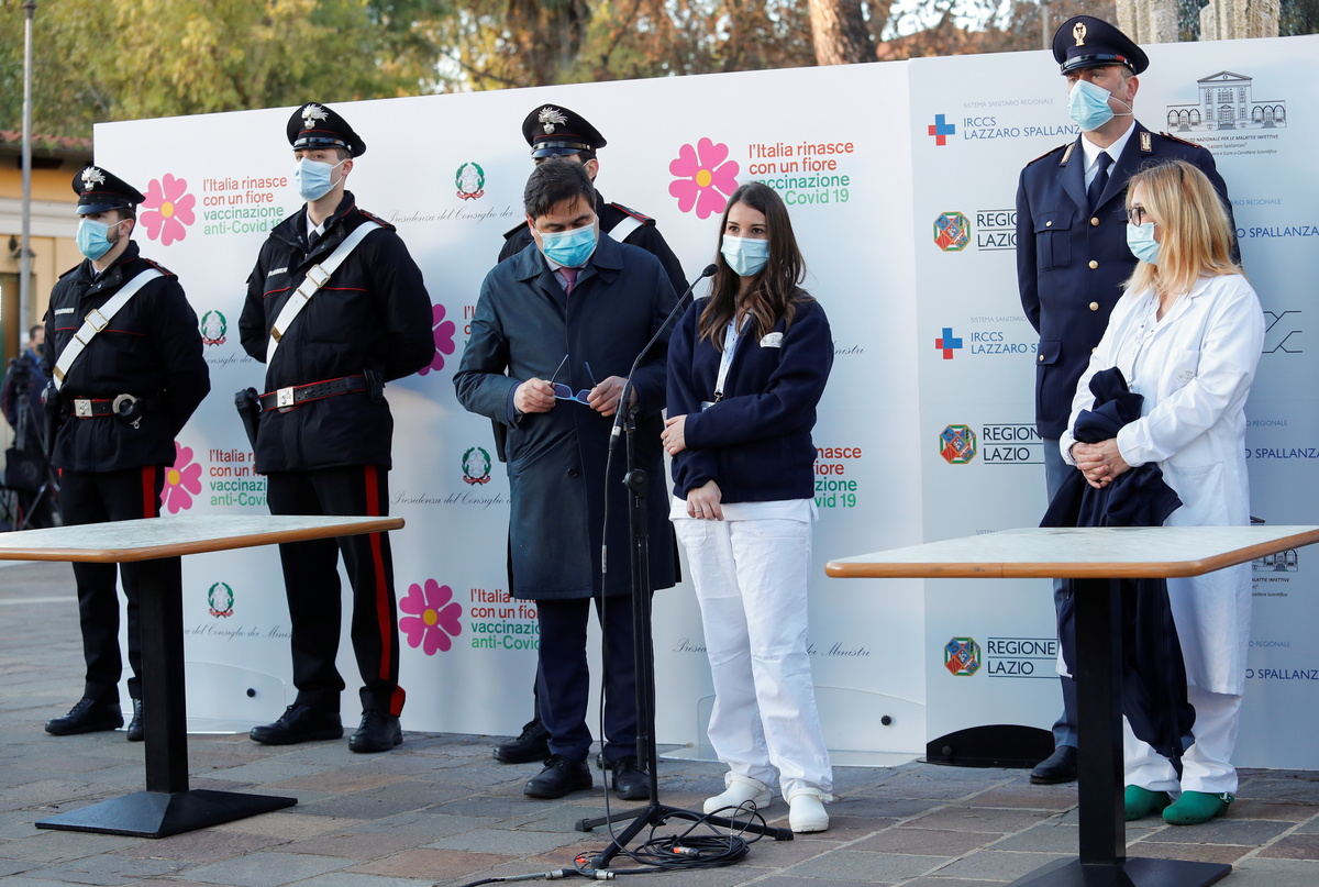 Three health workers at the Rome Spallanzani hospital were inoculated shortly before 0700 GMT with the vaccine developed by Pfizer and BioNTech, a statement by the commissioner for the epidemic Domenico Arcuri said.