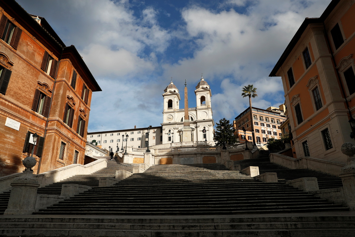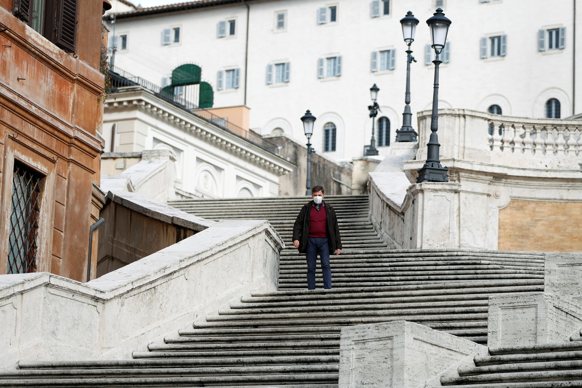 A man wearing a face mask walks on the Spanish Steps, as Italy goes back to a complete lockdown during Christmas season as part of efforts put in place to curb the spread of the coronavirus disease (COVID-19), in Rome, Italy, December 24, 2020. REUTERS/Yara Nardi