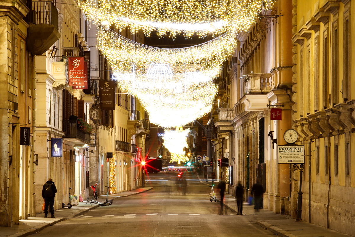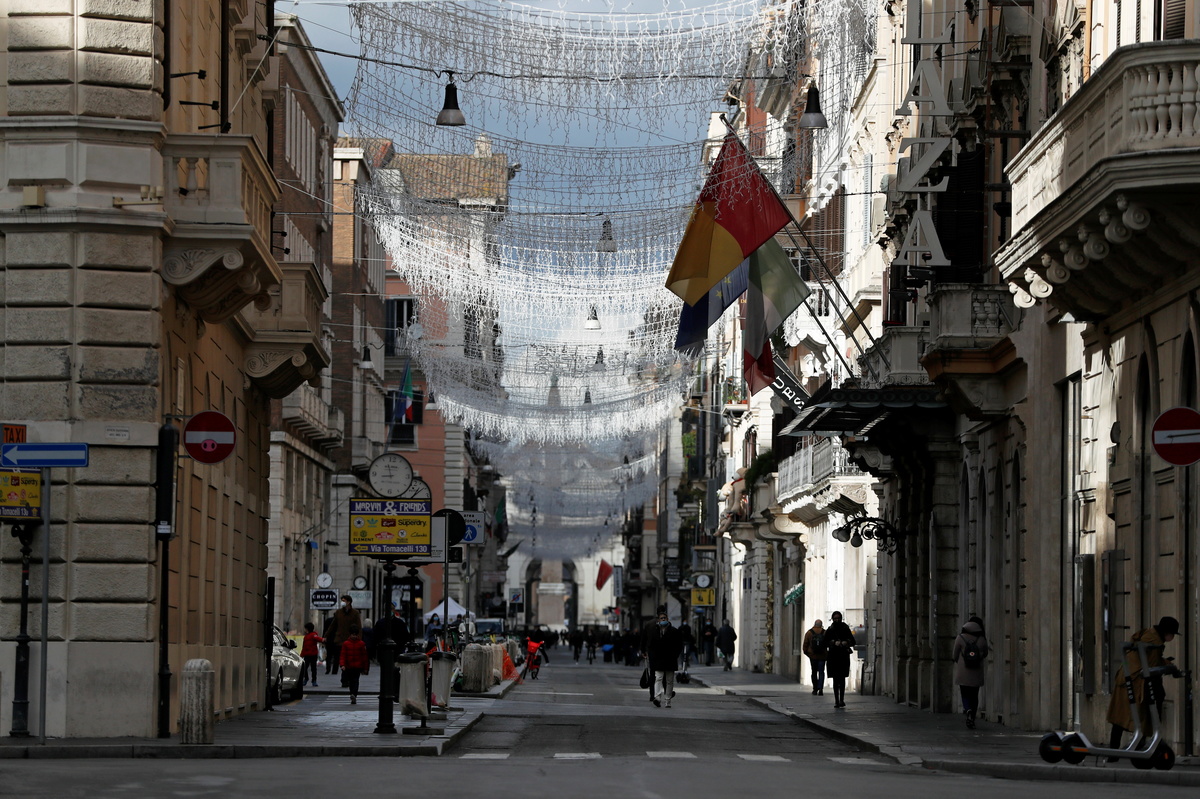 People walk along Via del Corso, as Italy goes back to a complete lockdown during Christmas season as part of efforts put in place to curb the spread of the coronavirus disease (COVID-19), in Rome, Italy, December 24, 2020. REUTERS/Yara Nardi