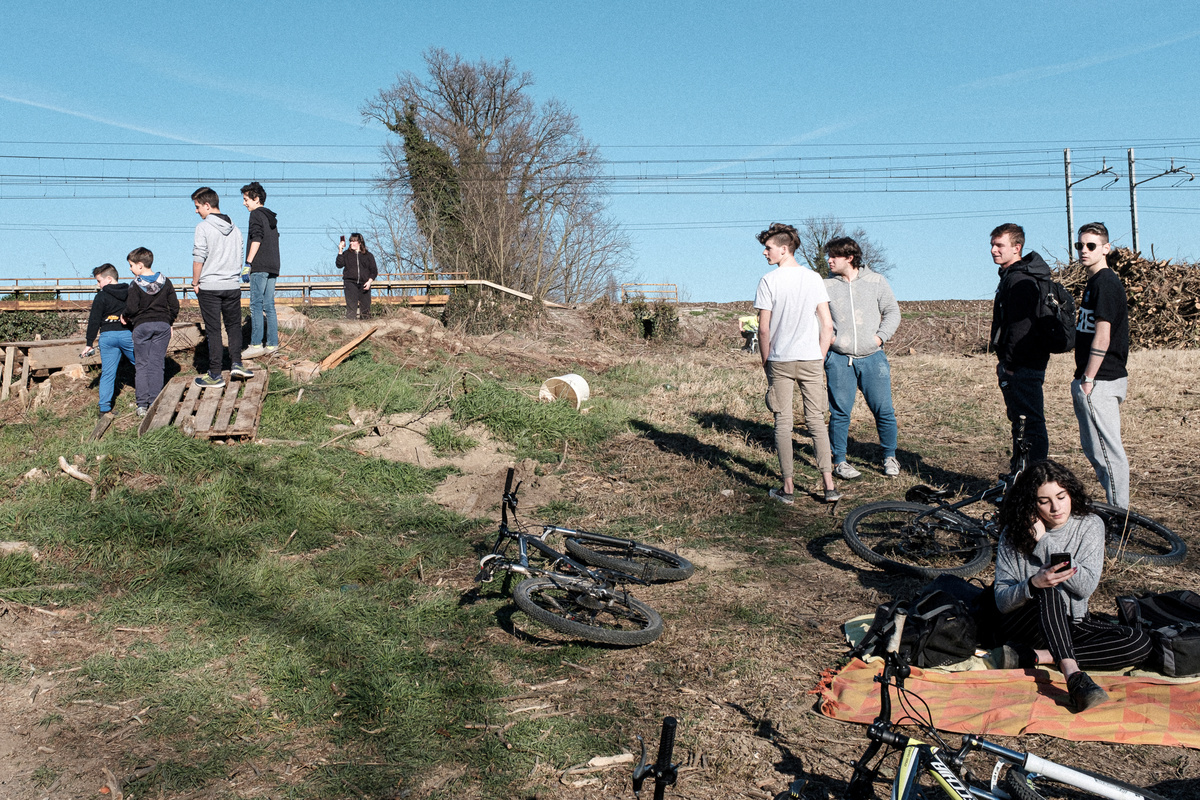 Life inside a red zone: A group of young people hang out listening to dance music on a boombox, by a train track in San Fiorano, one of the towns on lockdown due to a coronavirus outbreak, in this picture taken by schoolteacher Marzio Toniolo in San Fiorano, Italy, February 28, 2020. Marzio Toniolo via REUTERS