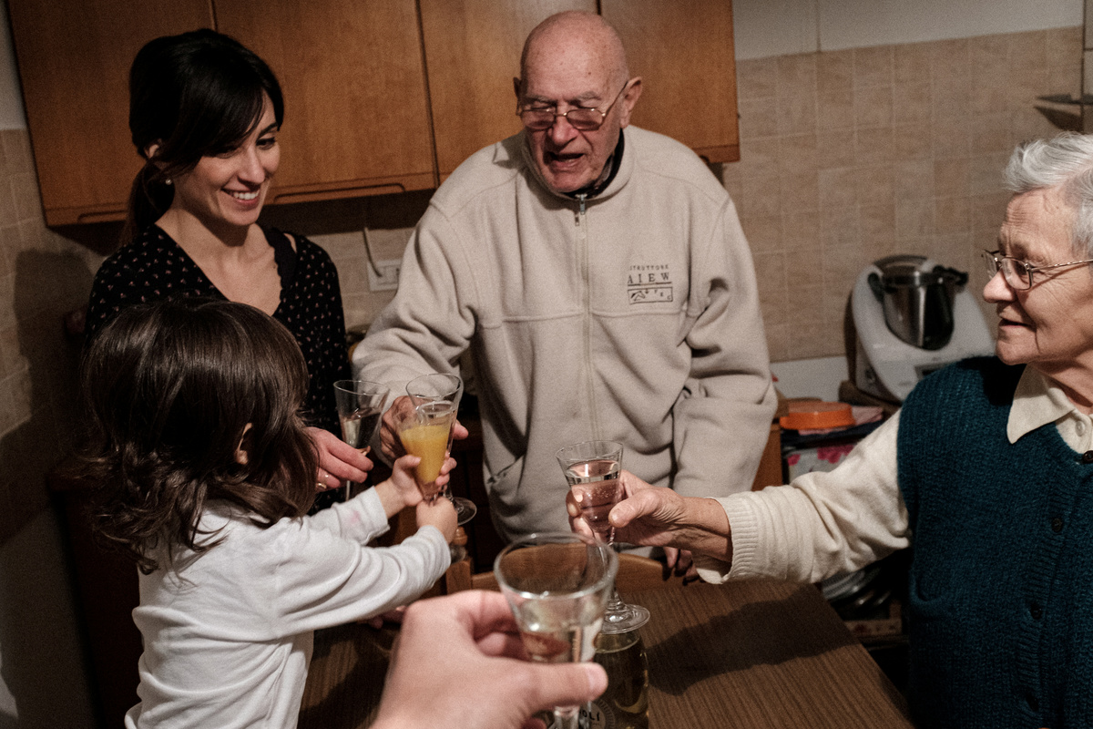 In Toniolo's house, the family gets together to make ravioli with grandmother Ines Prandini, 85. When the job is done, they clink glasses.