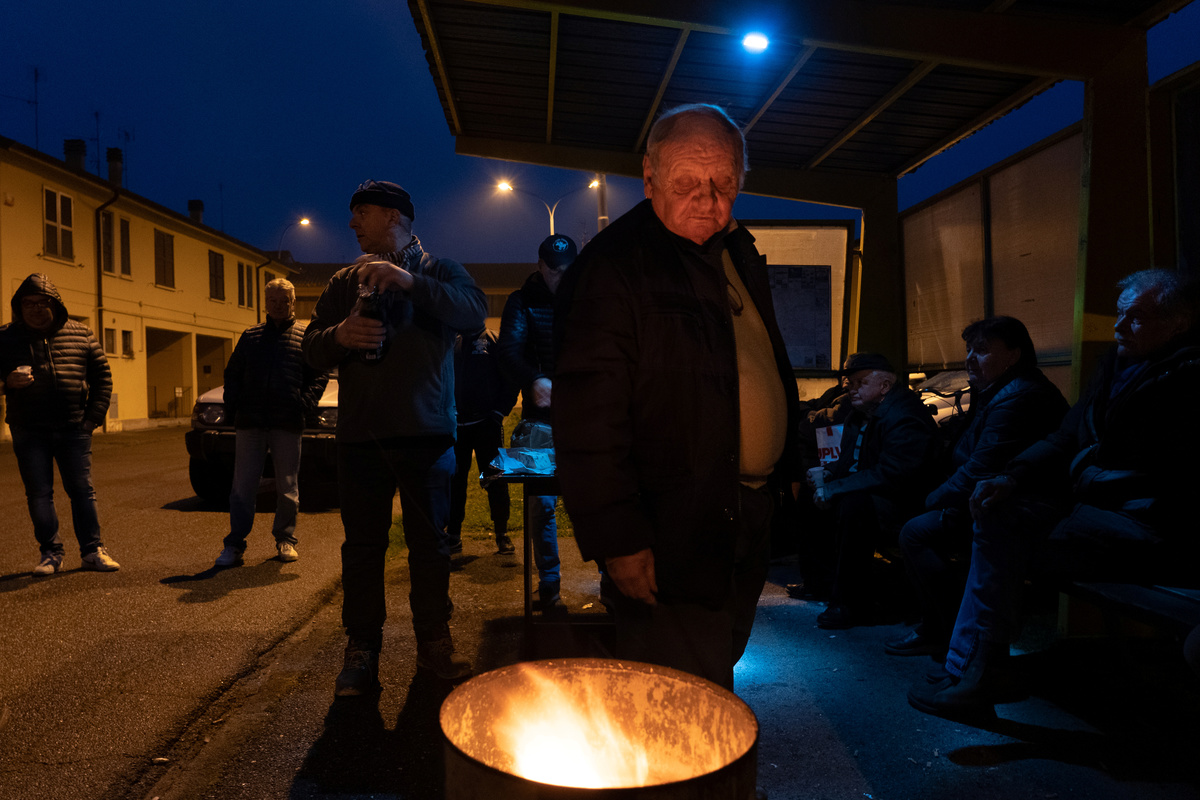 Life inside a red zone: An impromptu street party takes place at night by a bus stop in Codogno, one of the towns on lockdown due to a coronavirus outbreak, in this picture taken by schoolteacher Marzio Toniolo in Codogno, Italy, March 1, 2020. Red zone residents have been gathering at the bus stop, bringing food and wine, with no-one wearing protective masks. Marzio Toniolo via REUTERS