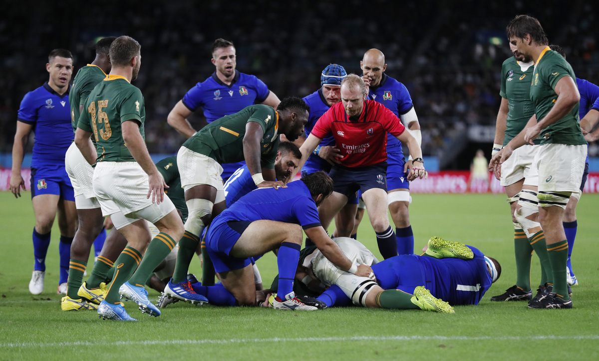 Italy coach Conor O'Shea is already facing a crisis in the front-row after two of his tight-head props, Simone Ferrari (hamstring) and replacement Marco Riccioni (concussion), both had to leave the field inside 18 minutes against the Boks, leading to uncontested scrums.