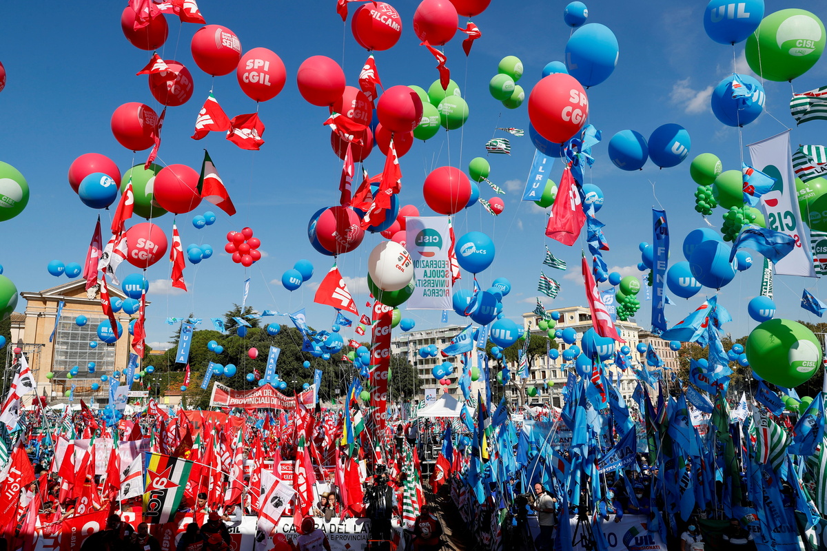 "We ask for concrete acts, not just chatter. It is time for the state to demonstrate its democratic strength in enforcing the laws and the constitution," CGIL's Secretary General Maurizio Landini said from the stage.