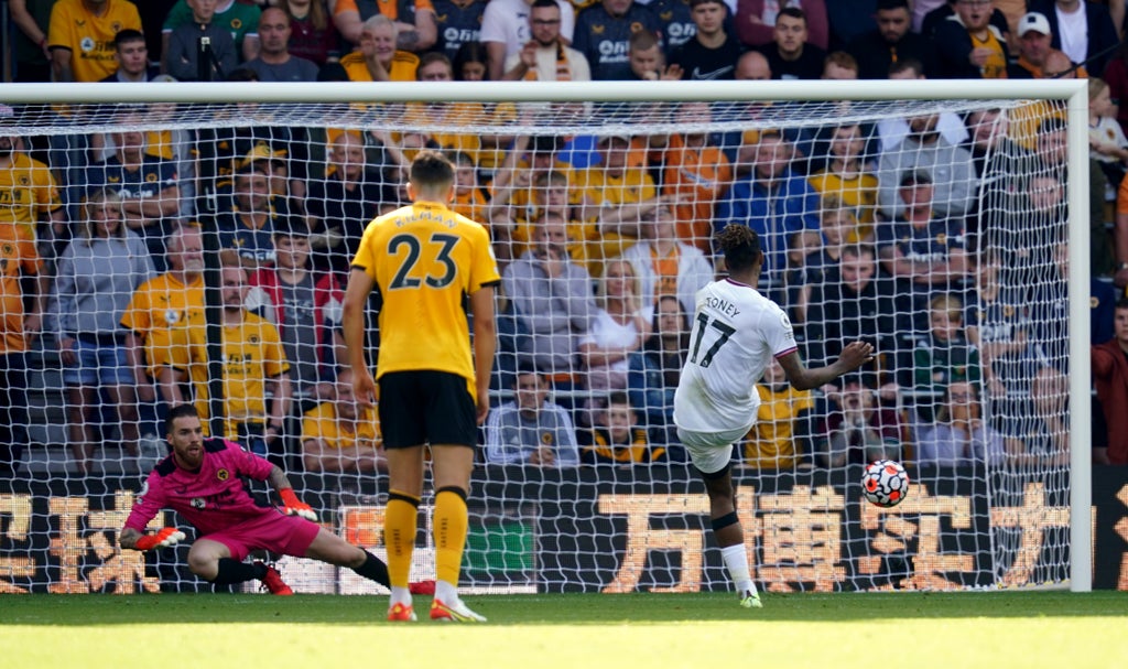 Marcal hauled Toney to the ground as a corner was floated in and the striker kept his head throughout lengthy Wolves protests before sending Jose Sa the wrong way from the penalty spot.