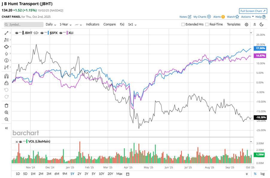 JBHT stock has considerably underperformed the S&P 500 Index’s ($SPX) 17.6% gains over the past 52 weeks, with shares down 20.2% during this period. Similarly, it considerably lagged behind the Industrial Select Sector SPDR Fund’s (XLI) 14% gains over the same time frame.