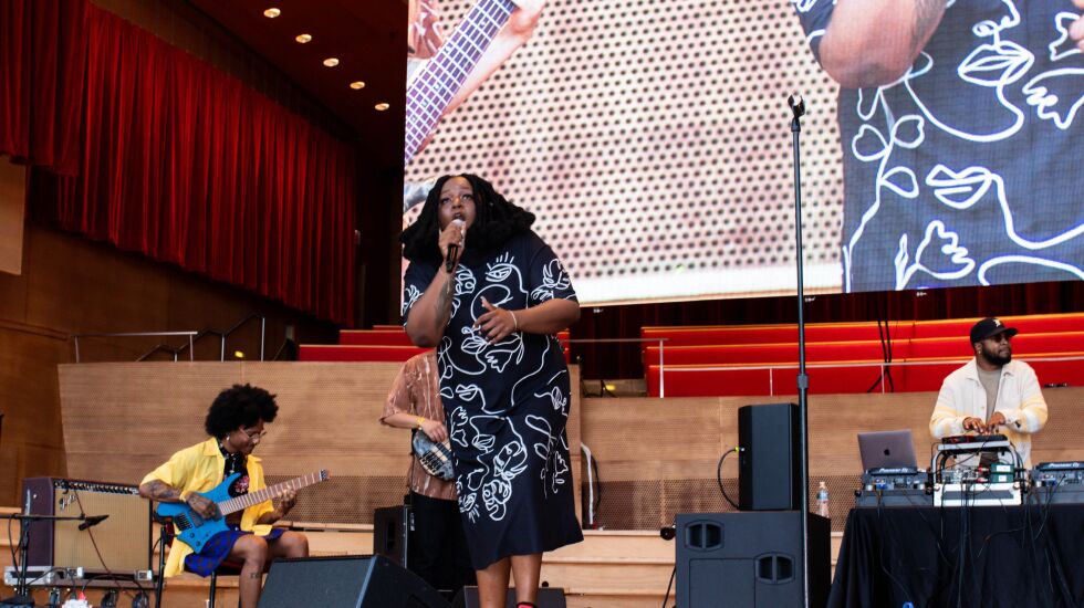 But as she became increasingly active in the city’s music scenes, Barber quickly saw inequities in the experiences of her nonmale, nonwhite peers. Seeing Black women underpaid and relegated to early opening slots before audiences had arrived pushed her to take a stance as an organizer in addition to being a performer. It all started with “The Brown Skin Lady Show” in 2017, a musical showcase that centered and empowered Black women at the now-defunct DIY spot, the Dojo, in Pilsen.