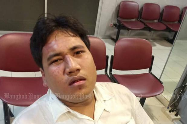 The activist was attacked by a group of people on Ratchadaphisek Road in Din Daeng district on Sunday night, and sustained injuries to his head and body. His Facebook Live stream showed bruises on his face.