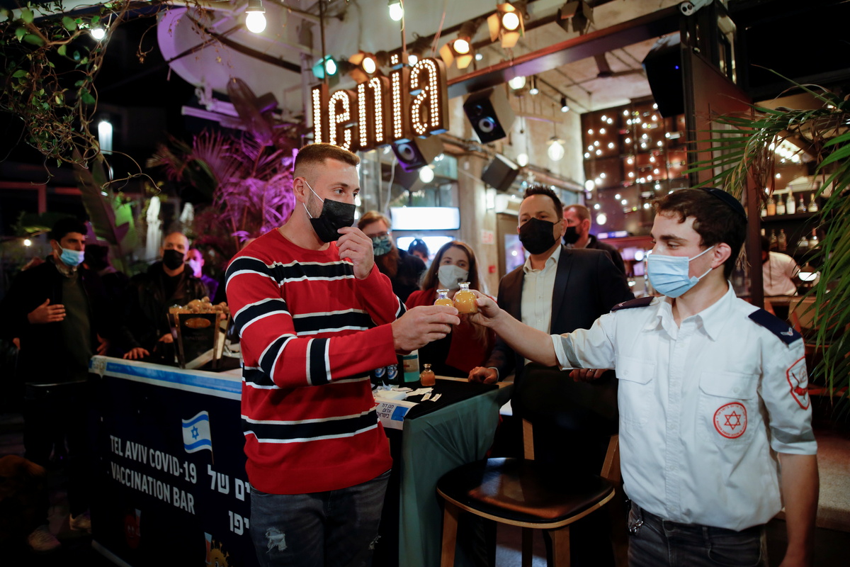 An Israeli bar doubled as a COVID-19 vaccination clinic on Thursday, with free drinks given to those who got the shots.