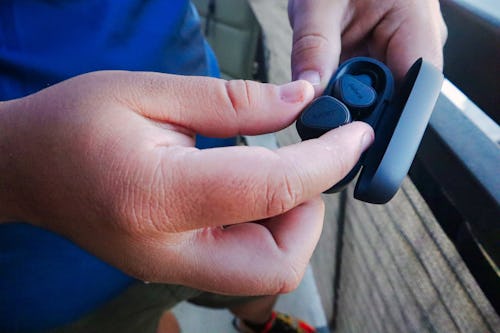 Whether the seal is tight or just right, the Elite 3 can last pretty dang long on a single charge. I’ve been using the Elite 3 exclusively for the last two weeks. I charged the case (USB-C) when I got the earbuds and one more time about a week later. Incidentally, the buds are designed to protrude from the bottom part of the charging case for easy removal, and they satisfyingly snap right into place when charging them. The hinge isn’t as fun as the AirPods or Pixel Buds, but fidgeters will be happy to know that the case closes with a meaty snap thanks to an embedded magnet.