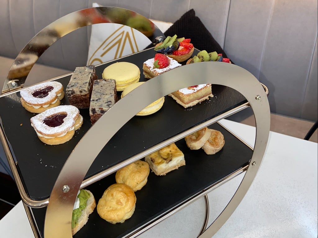 After sitting down and ordering our first cup, Earl Grey for me and chamomile for my friend, our tray of sweet and savoury snacks was brought out. Our waiter explained what everything was and specified that it was all vegetarian.