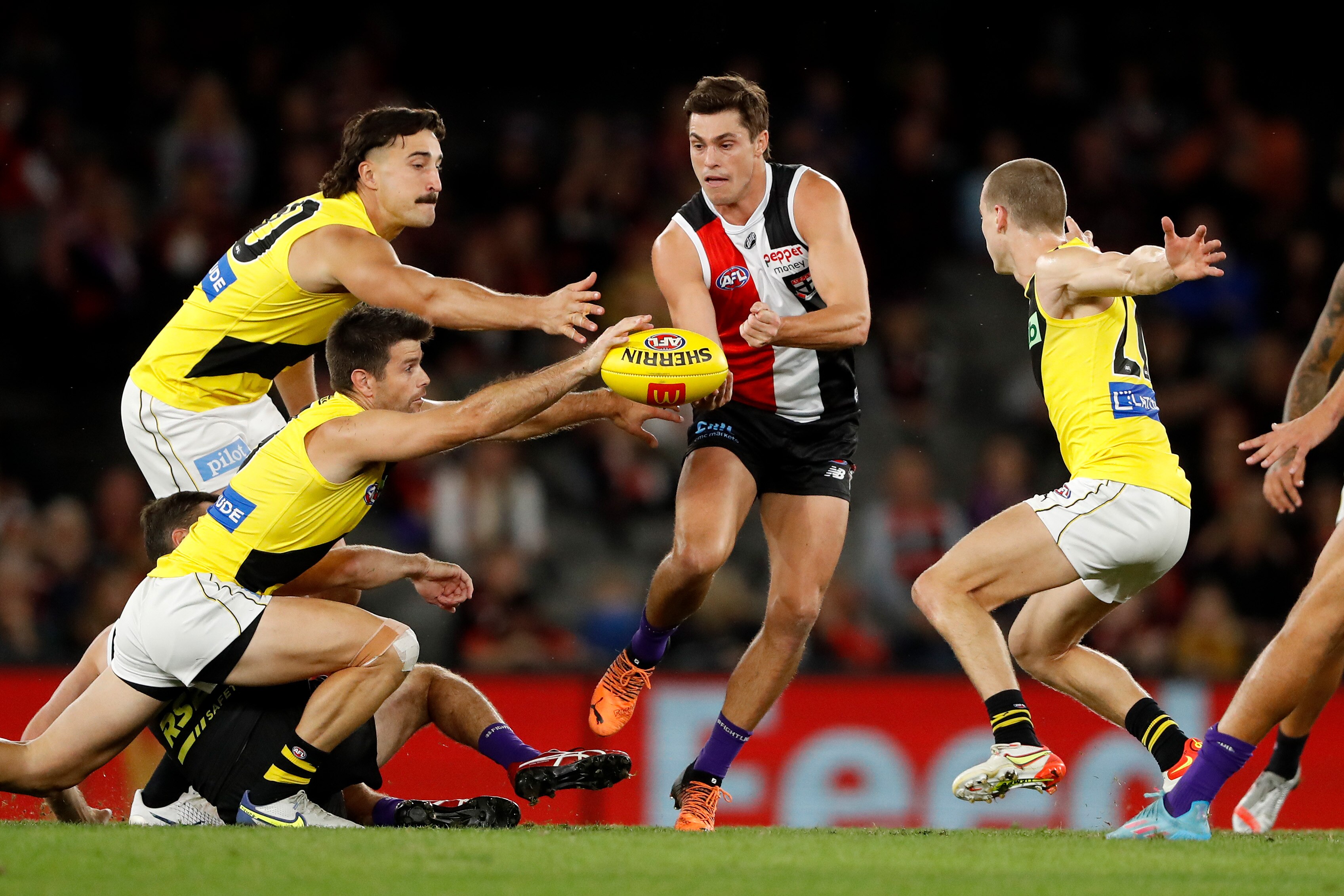 It means that Steele often gets first use of the ball, or can help his teammates to do so. St Kilda's performance at the contest has improved dramatically this year, a product of both a deeper midfield grouping and more defined team structures.