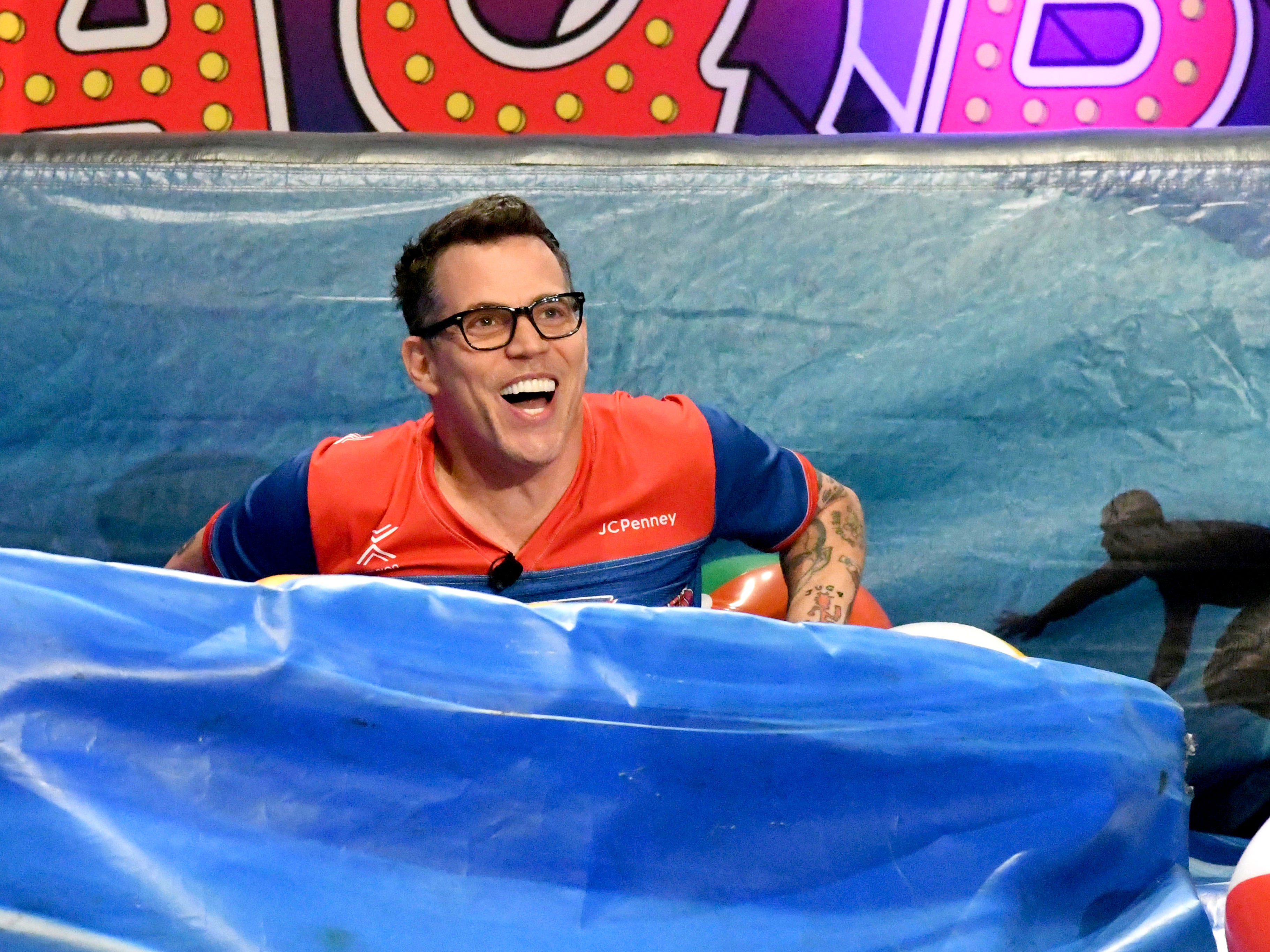 Steve-O participates in a celebrity challenge at The SHAQ Bowl for Super Bowl LV on February 07, 2021 in Tampa, Florida.