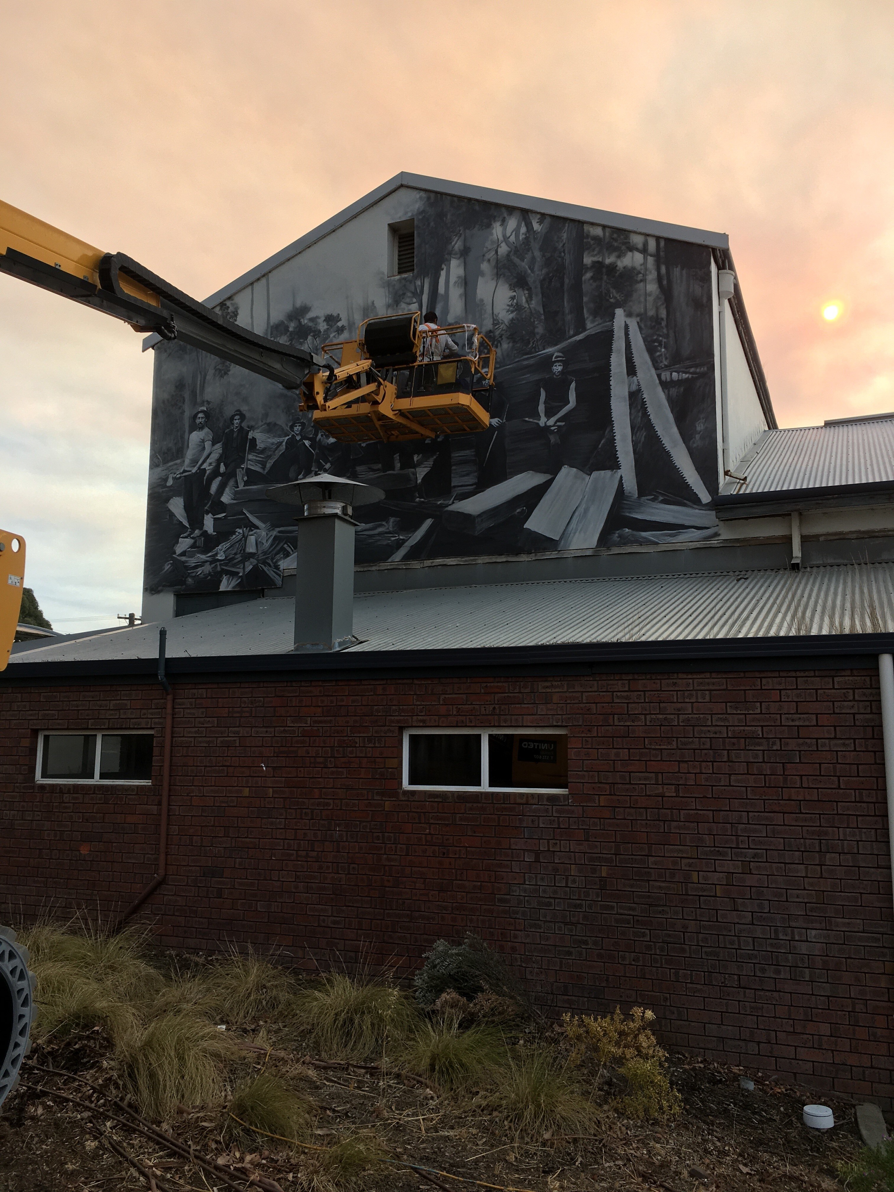 The 10-metre high and 4.5-metre wide mural pays tribute to the South West town's historical ties to the timber industry.
