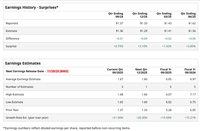 J is scheduled to report its Q4 earnings on Thursday, Nov. 20, before the market opens. Ahead of this event, analysts expect the company to report a profit of $1.67 per share, up 21.9% from $1.37 per share in the year-ago quarter. The company has surpassed Wall Street's bottom-line estimates in each of the past four quarters, which is impressive.