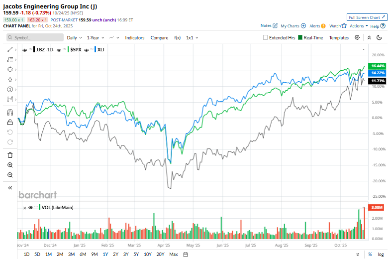 J stock has climbed 12.6% over the past 52 weeks, underperforming the Industrial Select Sector SPDR Fund’s (XLI) 14.1% surge and the S&P 500 Index’s ($SPX) 16.9% uptick during the same time frame.