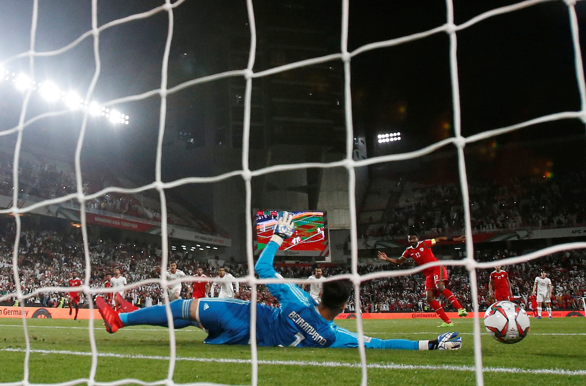 Striker Muhsen Al-Ghassani, Oman's best player, was hauled down by centre back Majid Hosseini but Beiranvand dived low to his right to deny the Oman skipper, just as he had Portugal captain Cristiano Ronaldo at last year's World Cup.