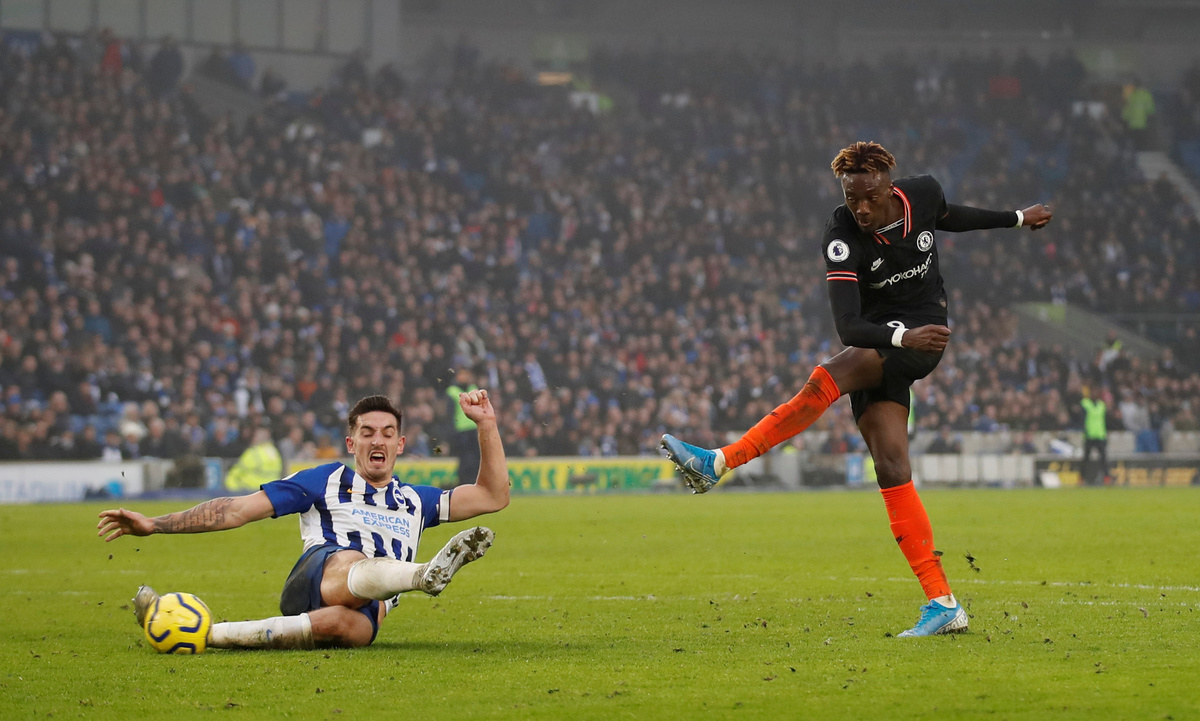 Soccer Football - Premier League - Brighton & Hove Albion v Chelsea - The American Express Community Stadium, Brighton, Britain - January 1, 2020 Chelsea's Tammy Abraham shoots at goal Action Images via Reuters/Matthew Childs