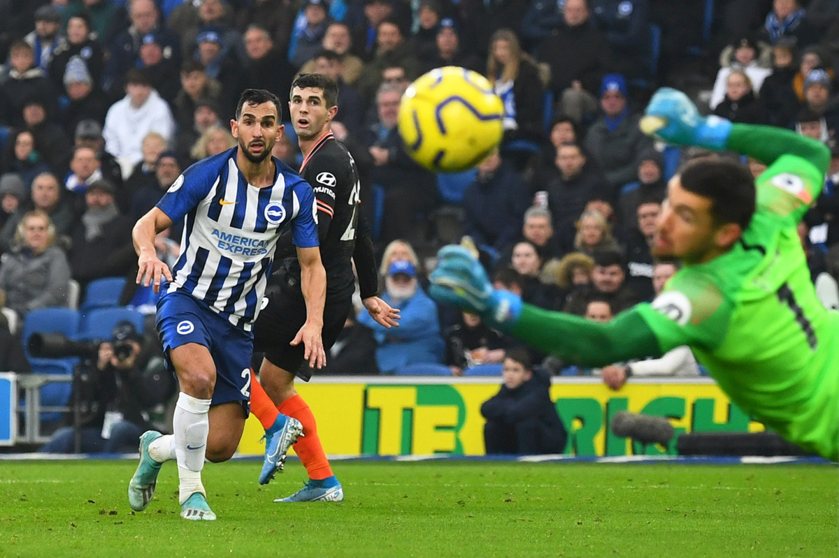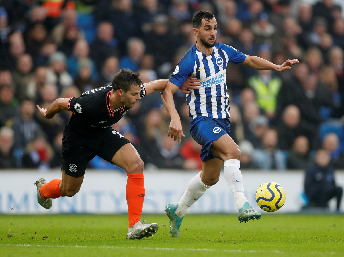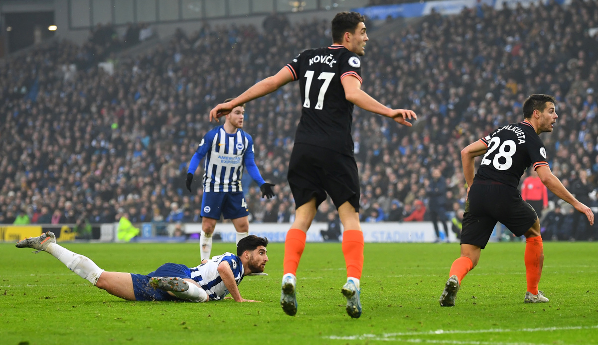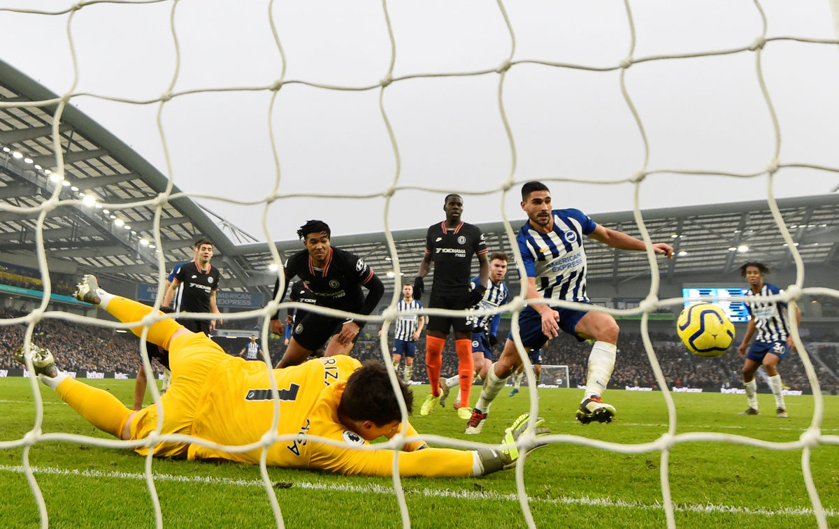 Soccer Football - Premier League - Brighton & Hove Albion v Chelsea - The American Express Community Stadium, Brighton, Britain - January 1, 2020 Brighton & Hove Albion's Alireza Jahanbakhsh scores their first goal REUTERS/Dylan Martinez Soccer Football - Premier League - Brighton & Hove Albion v Chelsea - The American Express Community Stadium, Brighton, Britain - January 1, 2020 Chelsea's Kurt Zouma and Kepa Arrizabalaga in action with Brighton & Hove Albion's Adam Webster REUTERS/Dylan Martinez Soccer Football - Premier League - Brighton & Hove Albion v Chelsea - The American Express Community Stadium, Brighton, Britain - January 1, 2020 Chelsea's N'Golo Kante in action with Brighton & Hove Albion's Adam Webster Action Images via Reuters/Matthew Childs Soccer Football - Premier League - Brighton & Hove Albion v Chelsea - The American Express Community Stadium, Brighton, Britain - January 1, 2020 Chelsea's Christian Pulisic shoots at goal REUTERS/Dylan Martinez Soccer Football - Premier League - Brighton & Hove Albion v Chelsea - The American Express Community Stadium, Brighton, Britain - January 1, 2020 Chelsea's Cesar Azpilicueta in action with Brighton & Hove Albion's Yves Bissouma REUTERS/Dylan Martinez Soccer Football - Premier League - Brighton & Hove Albion v Chelsea - The American Express Community Stadium, Brighton, Britain - January 1, 2020 Chelsea's Cesar Azpilicueta in action with Brighton & Hove Albion's Martin Montoya Action Images via Reuters/Matthew Childs Soccer Football - Premier League - Brighton & Hove Albion v Chelsea - The American Express Community Stadium, Brighton, Britain - January 1, 2020 Chelsea's Kepa Arrizabalaga makes a save REUTERS/Dylan Martinez Soccer Football - Premier League - Brighton & Hove Albion v Chelsea - The American Express Community Stadium, Brighton, Britain - January 1, 2020 Chelsea's Cesar Azpilicueta scores their first goal REUTERS/Dylan Martinez