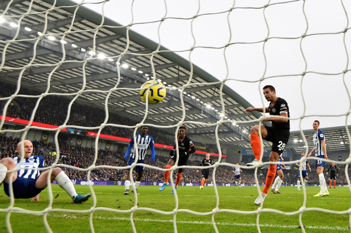 Left back Azpilicueta celebrated his 100th start as Chelsea captain with the opening goal, guiding the ball home from close range in the 10th minute after Tammy Abraham's shot was blocked near the goal line by Brighton's Aaron Mooy following a corner.