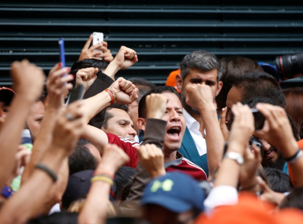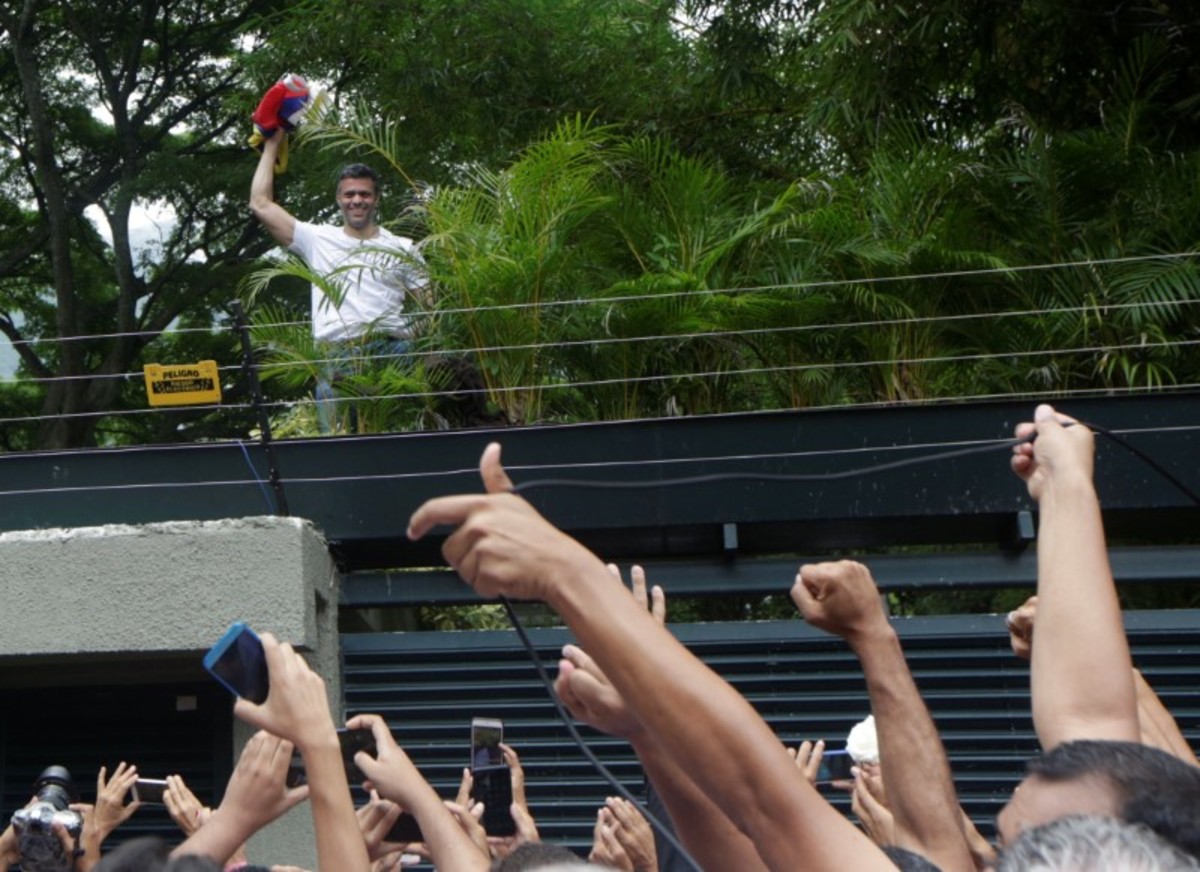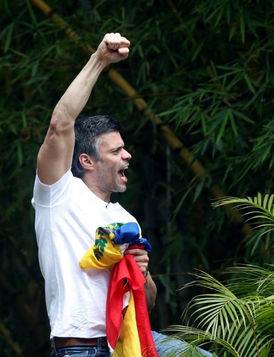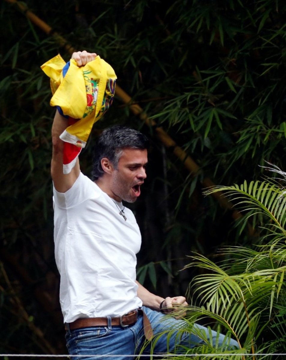 "Despite being under house arrest, he showed his face to the country," said Maria Garcia, 36, a business consultant, outside his house. "What we need to do now is stay in the street, because we need to achieve not just the freedom of Leopoldo but also the freedom of the Venezuelan people."