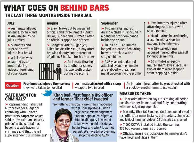 When TOI spoke to several former and serving IPS officers to know what may have gone wrong, a common point was that changes were needed at the grassroots level and knee-jerk reactions would not work in an environment like Tihar Jail. “One has to go inside to see. Can’t say. One can only suspect. Which is why a detailed inquiry is needed by a team that goes inside to see,” said Bedi.