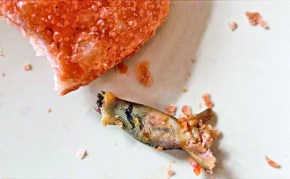 In the video, the customer is seen reaching the counter with the kachori purportedly showing the lizard to the employee that he had found in the kachori. The employee is also seen in the video picking the piece of ‘lizard’ and checking it. The customer is seen in the video saying, “I have found a lizard in kachori, you can see its bone as well.”