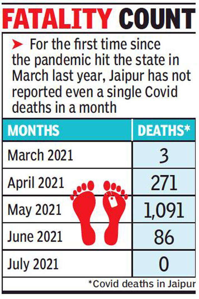 JAIPUR: For the first time, Jaipur did not report even a single Covid death in a month since April 2020. The fatality toll due to Covid in Pink City stands at 1,970.