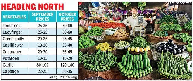 Also, the ladyfinger which was available in Rs 25 to Rs 35 per kg in the month of September has now available in Rs 50 to Rs 60 per kg.