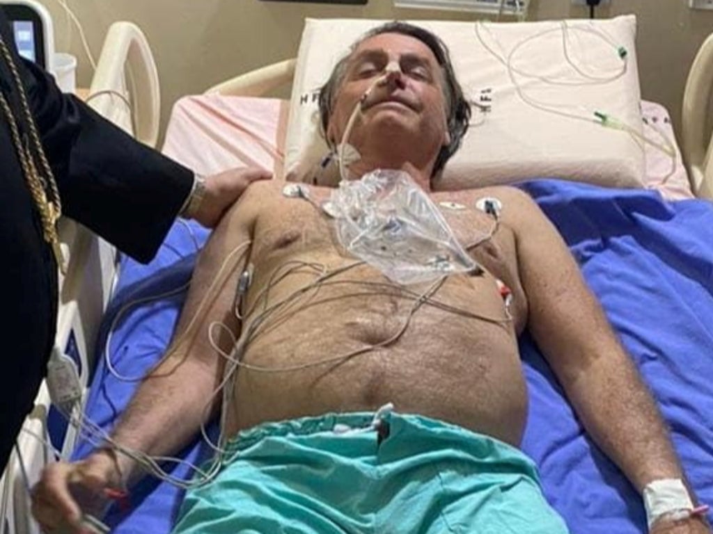 Mr Bolsonaro, who is Catholic and evangelical, posted on his official Twitter and Instagram accounts a photo of himself lying on a hospital bed, eyes closed, with several monitoring sensors stuck to his bare torso.