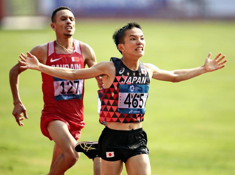 JAKARTA -- The morning after teen swimming star Rikako Ikee sped to victory in the women's 50-meter freestyle to become the first Japanese to win six gold medals at an Asian Games, Hiroto Inoue needed a final sprint to win the men's marathon on Saturday, continuing a gold medal rush from the day before.