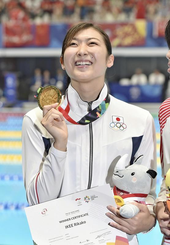 After finishing her final race, the 50 freestyle, in an Asian Games record of 24.53 seconds, Ikee walked toward the stands, where Japanese fans waved flags to celebrate her unprecedented sixth gold. Ikee stopped for a moment and could not hold back the tears.