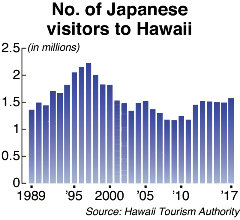 According to the Hawaii Tourism Authority, the number of Japanese people who visited Hawaii in 2017 increased by 5.4 percent to 1.56 million from the previous year.