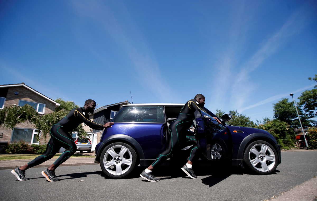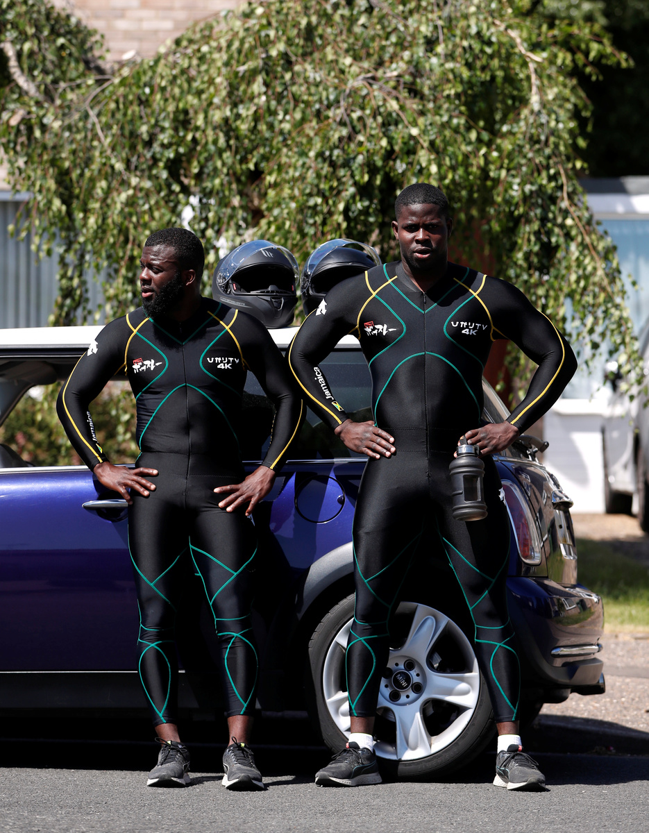 Bobsleigh - Jamaica Bobsleigh team members Shanwayne Stephens and Nimroy Turgott push a Mini Cooper. They have been pushing the car around the streets of Peterborough as part of their training following the outbreak of the coronavirus disease (COVID-19), Peterborough, Britain, May 29, 2020. REUTERS/Paul ChildsBobsleigh - Jamaica Bobsleigh team members Shanwayne Stephens and Nimroy Turgott push a Mini Cooper. They have been pushing the car around the streets of Peterborough as part of their training following the outbreak of the coronavirus disease (COVID-19), Peterborough, Britain, May 29, 2020. REUTERS/Paul ChildsBobsleigh - Jamaica Bobsleigh team members Shanwayne Stephens and Nimroy Turgott push a Mini Cooper. They have been pushing the car around the streets of Peterborough as part of their training following the outbreak of the coronavirus disease (COVID-19), Peterborough, Britain, May 29, 2020. REUTERS/Paul ChildsBobsleigh - Jamaica Bobsleigh team members Shanwayne Stephens and Nimroy Turgott change into their team wear before they push a Mini Cooper. They have been pushing the car around the streets of Peterborough as part of their training following the outbreak of the coronavirus disease (COVID-19), Peterborough, Britain, May 29, 2020. REUTERS/Paul ChildsBobsleigh - Jamaica Bobsleigh team member Shanwayne Stephens is pictured working out near his home. He has been pushing a Mini Cooper around the streets of Peterborough with Jamaica Bobsleigh team member Nimroy Turgott as part of their training following the outbreak of the coronavirus disease (COVID-19), Peterborough, Britain, May 29, 2020. REUTERS/Paul ChildsBobsleigh - Jamaica Bobsleigh team members Shanwayne Stephens and Nimroy Turgott stand beside a Mini Cooper. They have been pushing the car around the streets of Peterborough as part of their training following the outbreak of the coronavirus disease (COVID-19), Peterborough, Britain, May 29, 2020. REUTERS/Paul ChildsBobsleigh - Jamaica Bobsleigh team member Nimroy Turgott is pictured working out at his home. He has been pushing a Mini Cooper around the streets of Peterborough with Jamaica Bobsleigh team member Shanwayne Stephens as part of their training following the outbreak of the coronavirus disease (COVID-19), Peterborough, Britain, May 29, 2020. REUTERS/Paul ChildsBobsleigh - Jamaica Bobsleigh team members Shanwayne Stephens and Nimroy Turgott stand beside a Mini Cooper. They have been pushing the car around the streets of Peterborough as part of their training following the outbreak of the coronavirus disease (COVID-19), Peterborough, Britain, May 29, 2020. REUTERS/Paul ChildsBobsleigh - Jamaica Bobsleigh team members Shanwayne Stephens and Nimroy Turgott stand beside a Mini Cooper. They have been pushing the car around the streets of Peterborough as part of their training following the outbreak of the coronavirus disease (COVID-19), Peterborough, Britain, May 29, 2020. REUTERS/Paul ChildsBobsleigh - Jamaica Bobsleigh team members Shanwayne Stephens and Nimroy Turgott push a Mini Cooper. They have been pushing the car around the streets of Peterborough as part of their training following the outbreak of the coronavirus disease (COVID-19), Peterborough, Britain, May 29, 2020. REUTERS/Paul Childs
