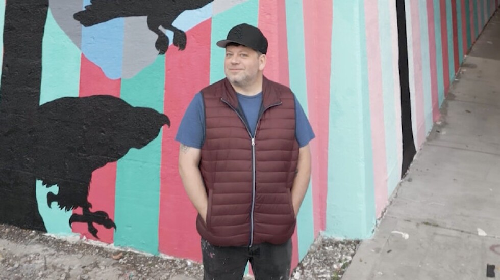 At his art studio in Pilsen, he says, “We have a family of peregrine falcons that live on our roof.”