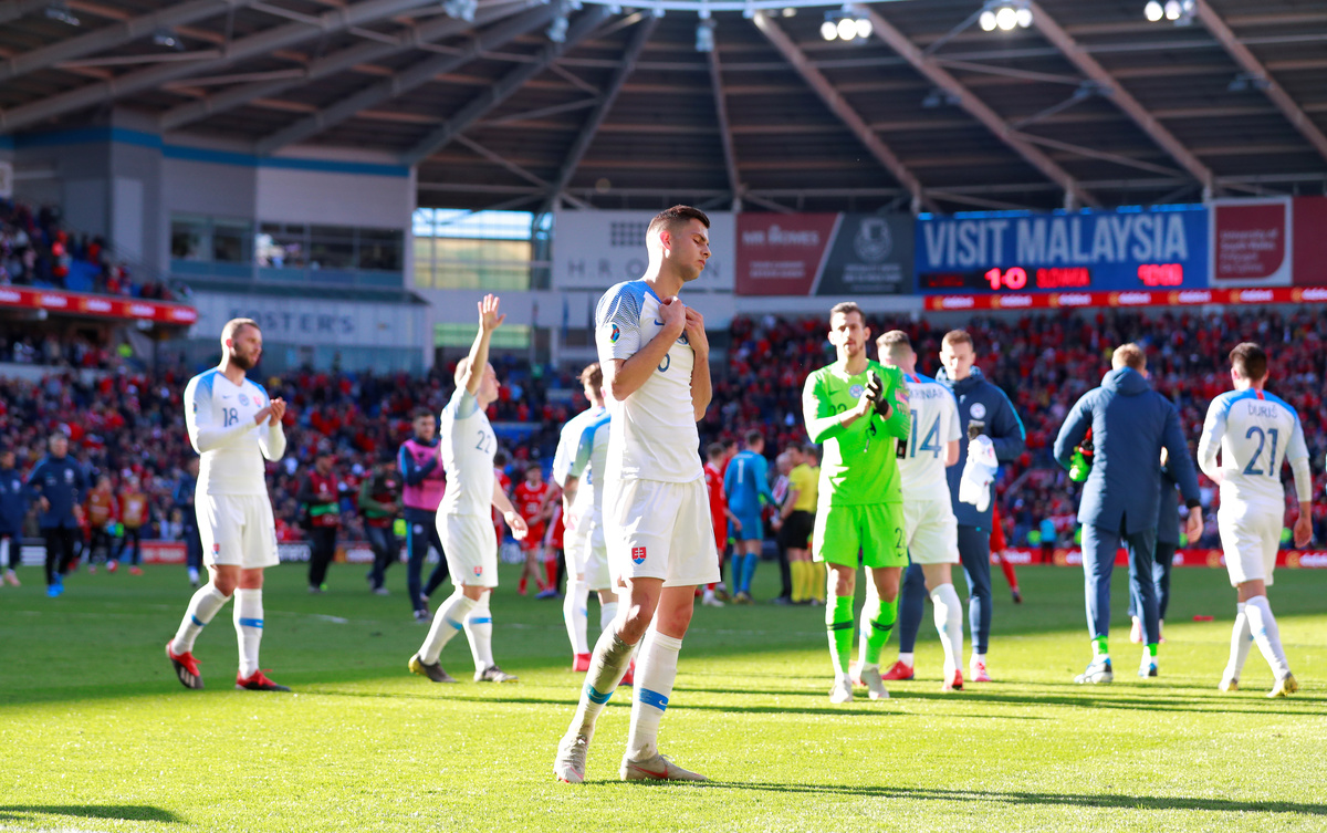 Soccer Football - Euro 2020 Qualifier - Group E - Wales v Slovakia - Cardiff City Stadium, Cardiff, Britain - March 24, 2019 Slovakia players after the match Action Images via Reuters/Andrew Couldridge