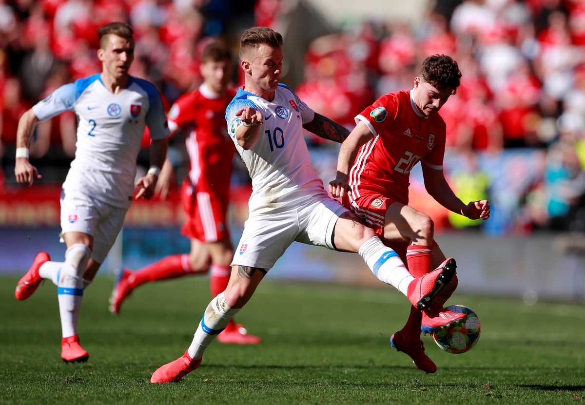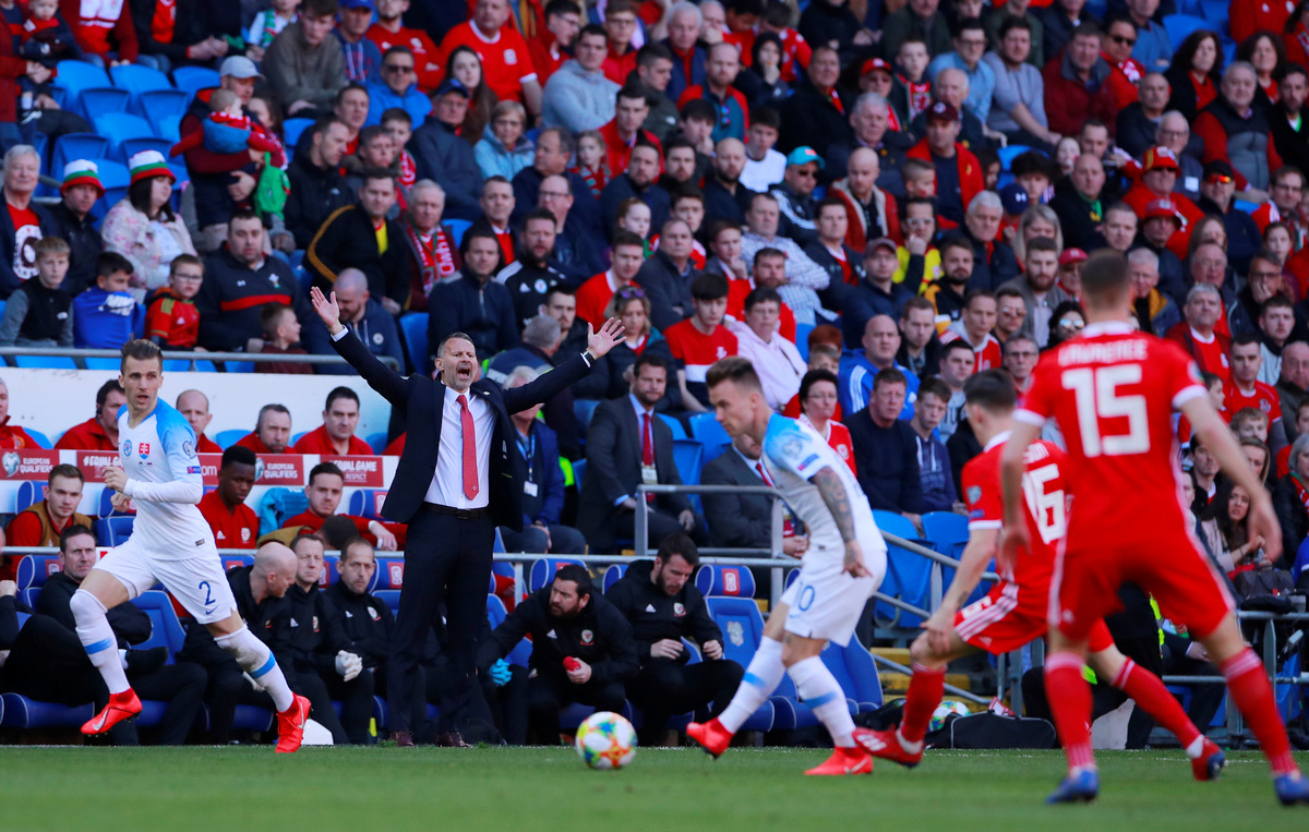 Soccer Football - Euro 2020 Qualifier - Group E - Wales v Slovakia - Cardiff City Stadium, Cardiff, Britain - March 24, 2019 Wales' Gareth Bale in action with Slovakia's Martin Dubravka Action Images via Reuters/Andrew CouldridgeSoccer Football - Euro 2020 Qualifier - Group E - Wales v Slovakia - Cardiff City Stadium, Cardiff, Britain - March 24, 2019 Slovakia's Stanislav Lobotka is shown a yellow card by referee Felix Zwayer REUTERS/Rebecca NadenSoccer Football - Euro 2020 Qualifier - Group E - Wales v Slovakia - Cardiff City Stadium, Cardiff, Britain - March 24, 2019 Wales' Daniel James in action with Slovakia's Albert Rusnak Action Images via Reuters/Andrew CouldridgeSoccer Football - Euro 2020 Qualifier - Group E - Wales v Slovakia - Cardiff City Stadium, Cardiff, Britain - March 24, 2019 Wales' Wayne Hennessey in action with Slovakia's Albert Rusnak Action Images via Reuters/Andrew CouldridgeSoccer Football - Euro 2020 Qualifier - Group E - Wales v Slovakia - Cardiff City Stadium, Cardiff, Britain - March 24, 2019 Wales manager Ryan Giggs during the match Action Images via Reuters/Andrew CouldridgeSoccer Football - Euro 2020 Qualifier - Group E - Wales v Slovakia - Cardiff City Stadium, Cardiff, Britain - March 24, 2019 Wales' Joe Allen in action with Slovakia's Miroslav Stoch Action Images via Reuters/Andrew Couldridge
