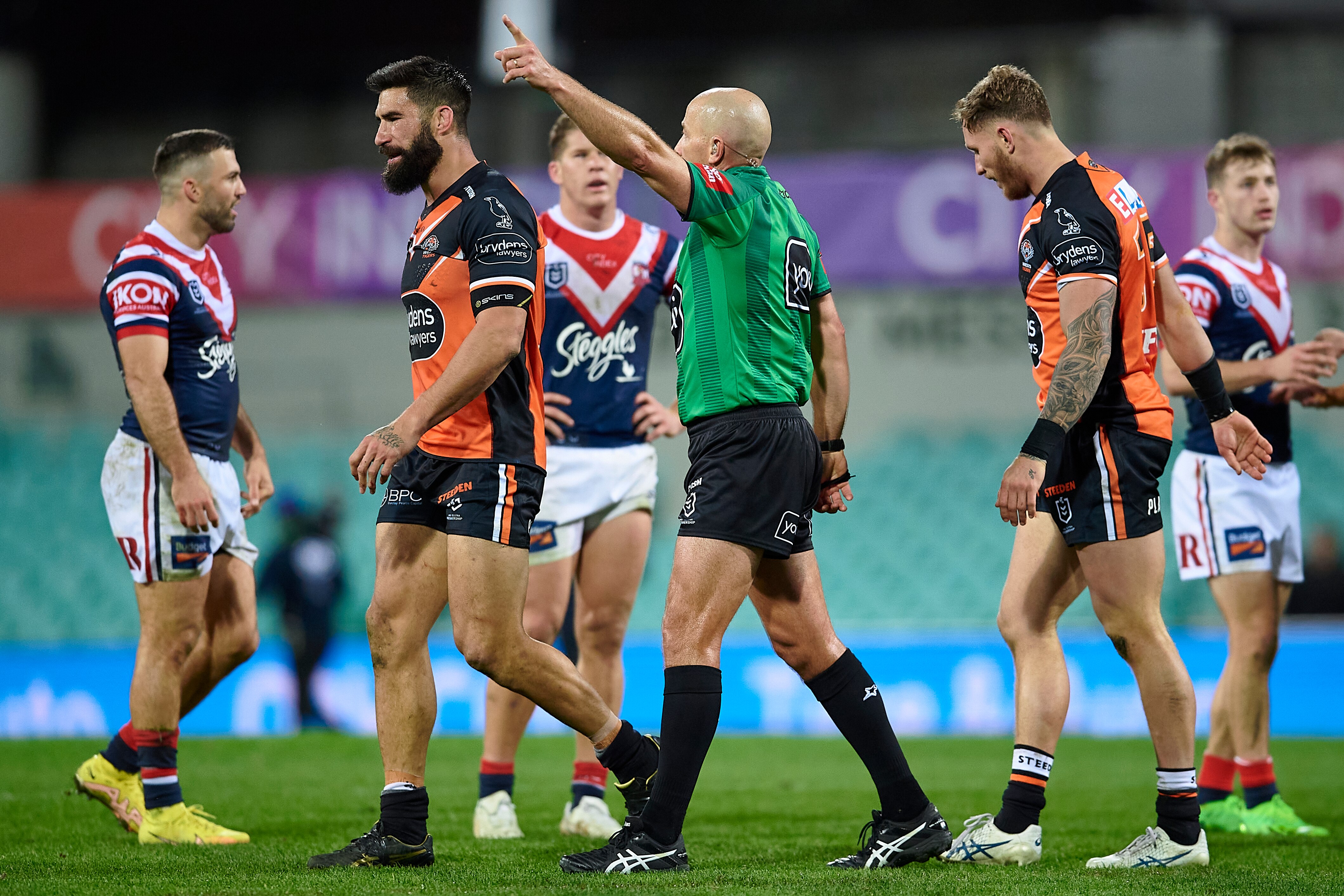 It came after he was forced to sit through 55 minutes of deliberation, awaiting his fate for telling referee Ben Cummins he was "f***ing incompetent" during the Tigers' 72-6 loss to the Sydney Roosters.