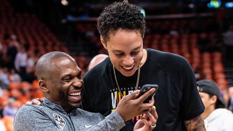 Wade hadn’t been able to share an embrace with Brittney Griner for more than a year after she was wrongfully detained in Russia. The last time Wade saw Griner in person was at Game 4 of the 2021 WNBA Finals.