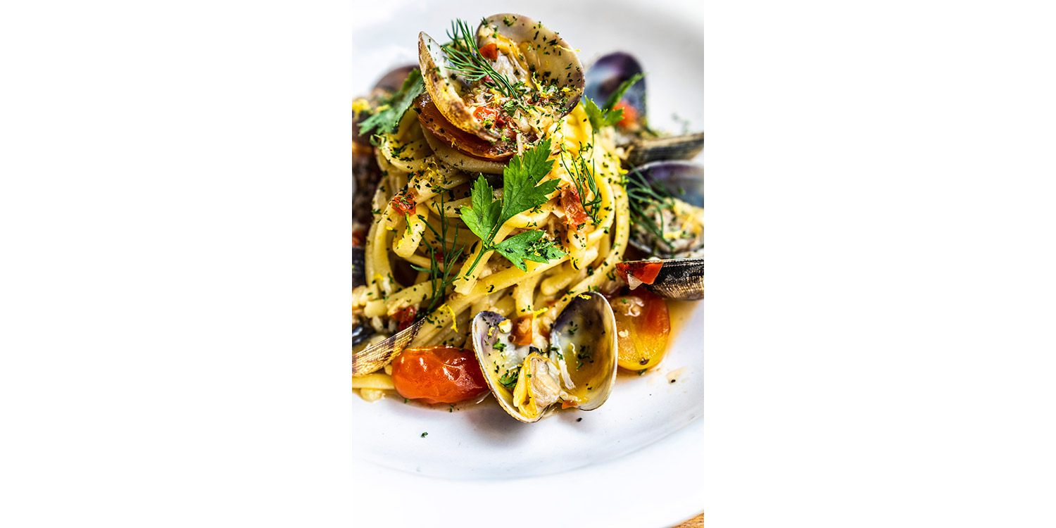 For primis, choose from wild mushroom risotto; tagliatelle with red wine-soaked pork and beef ragu or, our choices, classic Linguine Vongole, tender steamed clams with garlic, chili, white wine, caper and parsley sauce, and; perfectly al dente tagliatelle slathered with fresh truffle, butter and nutmeg.