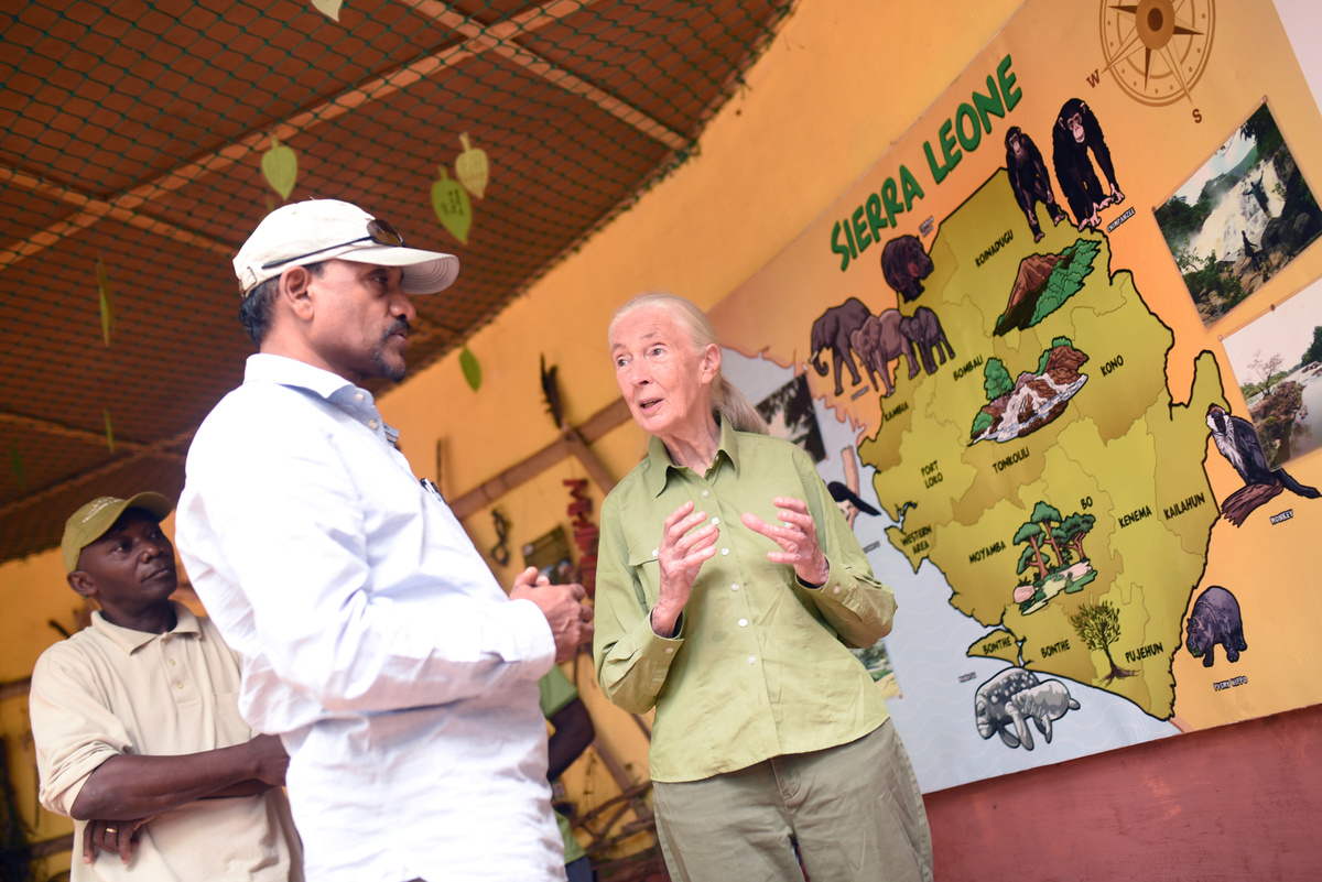 FREETOWN (Reuters) - Jane Goodall visited a chimpanzee sanctuary in Sierra Leone on Thursday that has taken on the veteran primatologist's mission to protect the animals threatened by deforestation, disease and hunting.