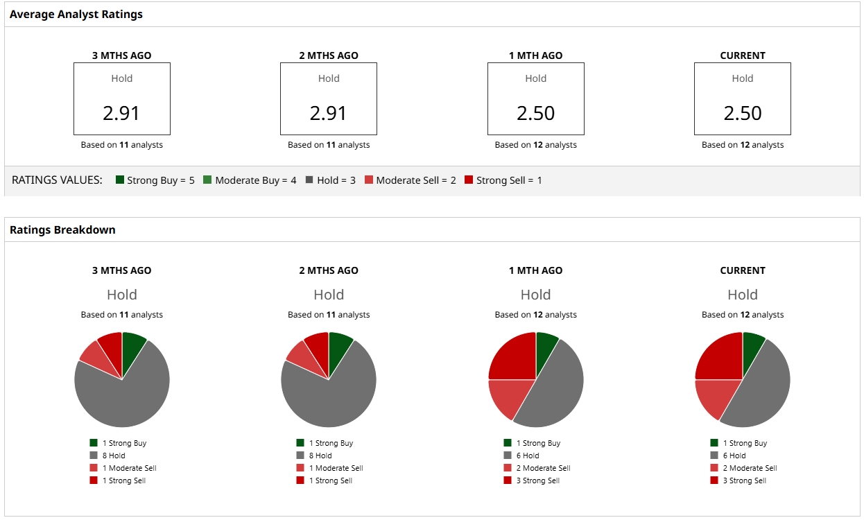 While OPEN is a popular stock to trade on Wall Street—thanks to its meme status—analysts are torn about the company’s future. Of 12 analysts who have coverage on the stock, only one lists it as a “Strong Buy,” with six others labeling it a “Hold,” and the remaining five at “Moderate Sell” and “Strong Sell.”