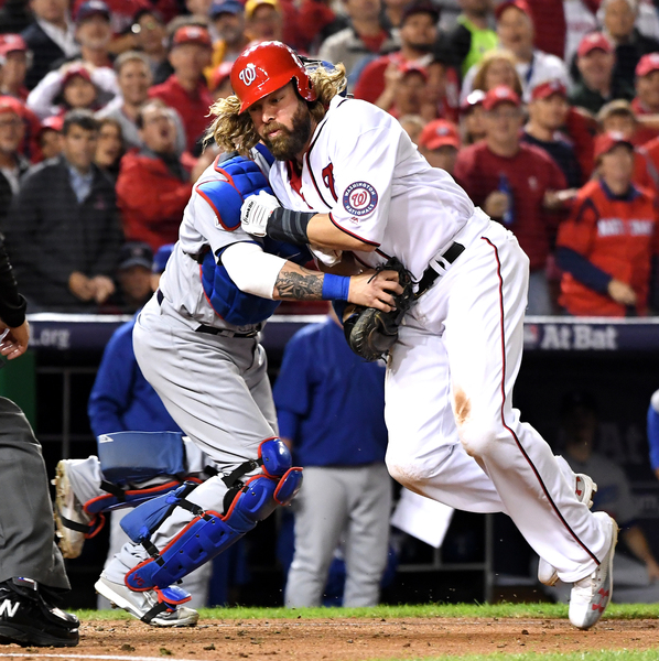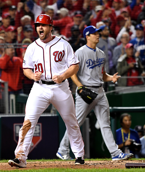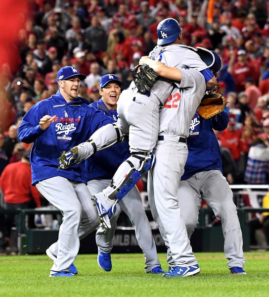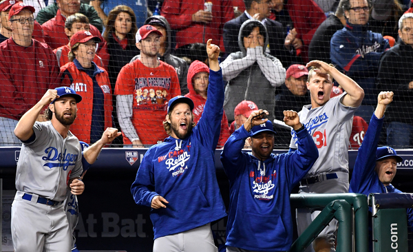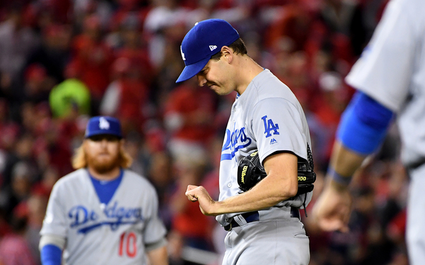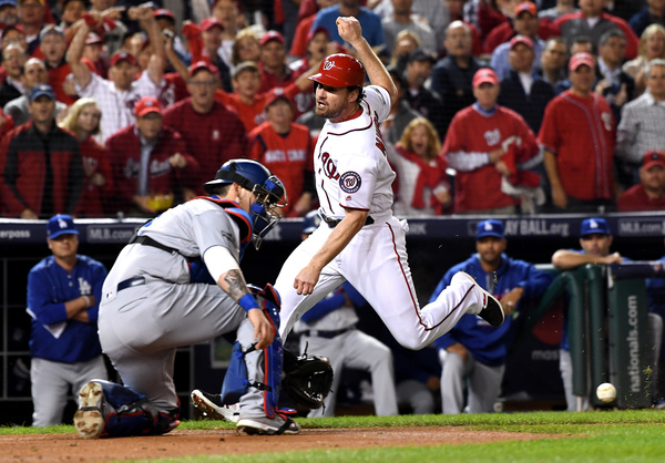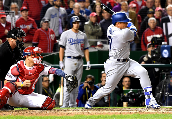 To take the lead, Roberts utilized all three of his catchers in the seventh inning. After a solo homer by Joc Pederson off Scherzer tied the score, Yasmani Grandal walked and took second base on a single by Howie Kendrick. Austin Barnes replaced Grandal on the bases. At the plate was the third catcher, Carlos Ruiz, who smacked a go-ahead single to score Barnes.
