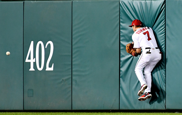 Enthralled with Murphy at second, Hill spun around twice to attempt pickoffs. He could not find the zone against first baseman Ryan Zimmerman, who walked on five pitches. Up next came shortstop Danny Espinosa, who punched a curveball into right field, giving Murphy another chance to run.