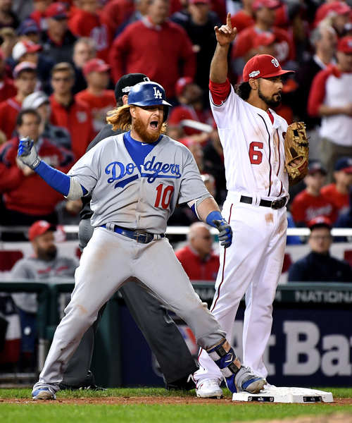 Finding a run against Scherzer was less simple. The team squandered a bases-loaded chance in the fifth. After singles by Reddick and Pederson, Andrew Toles lifted a one-out hit just above Murphy's glove. Roberts sent Andre Ethier to pinch-hit for Blanton. Ethier could not replicate his production from Game 4. He struck out, and Scherzer got Chase Utley to ground out.