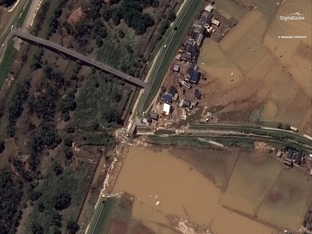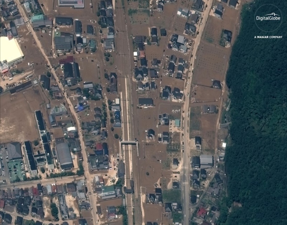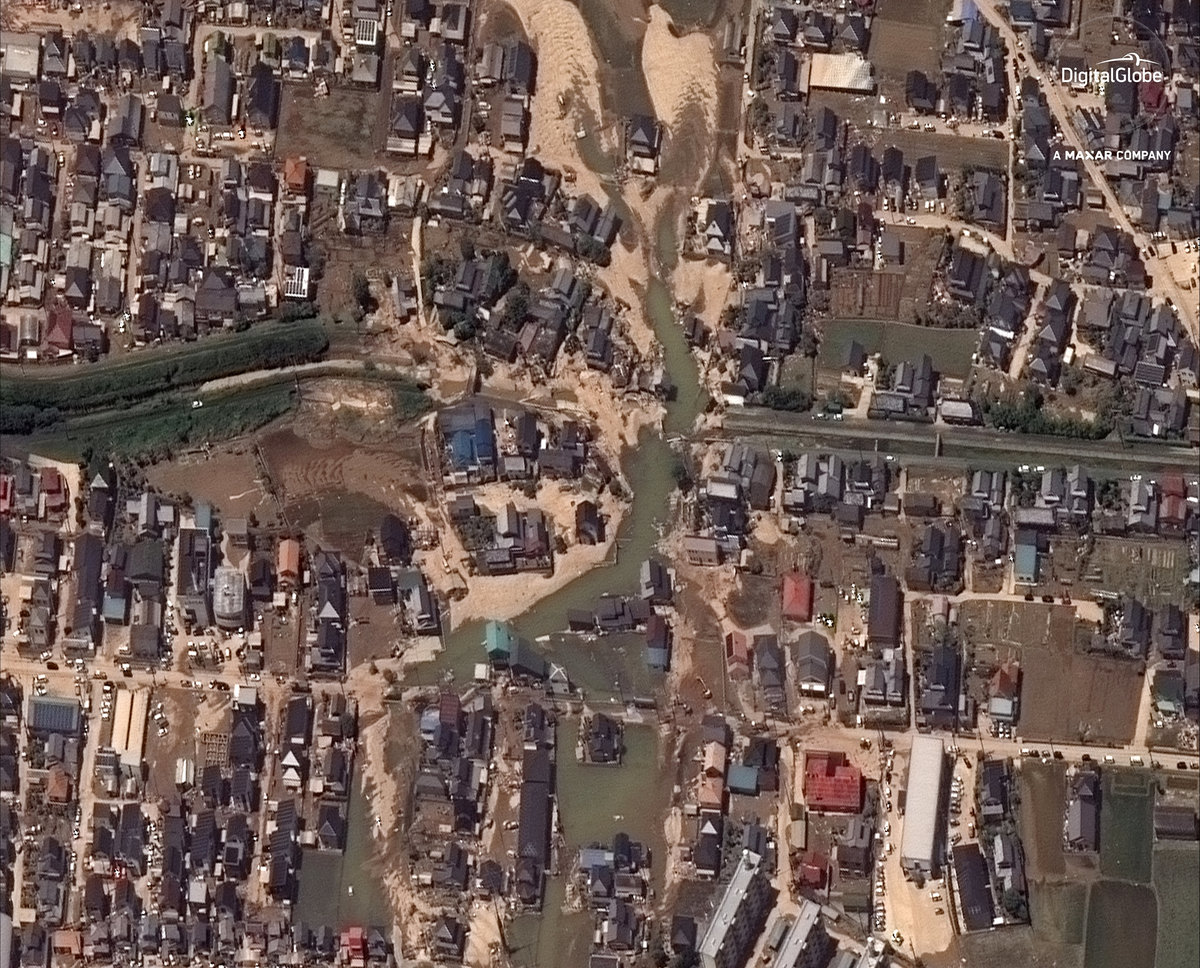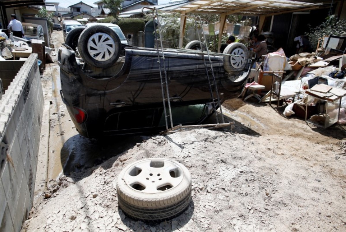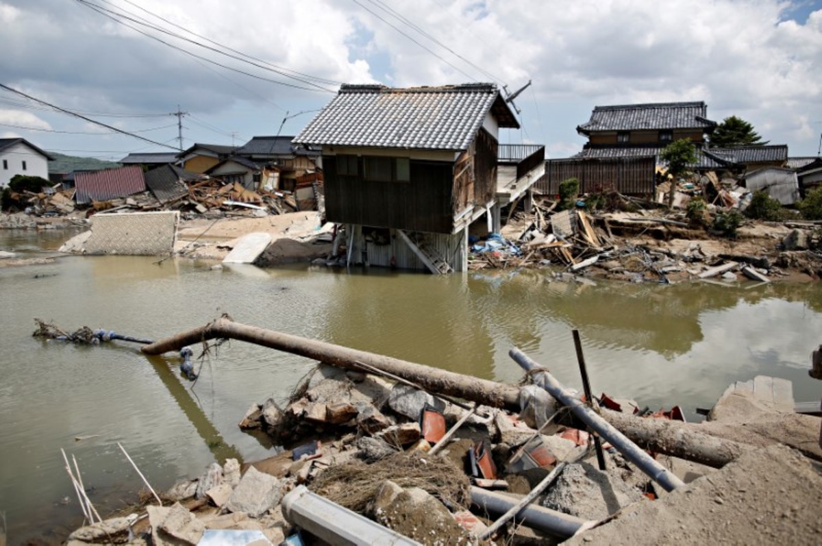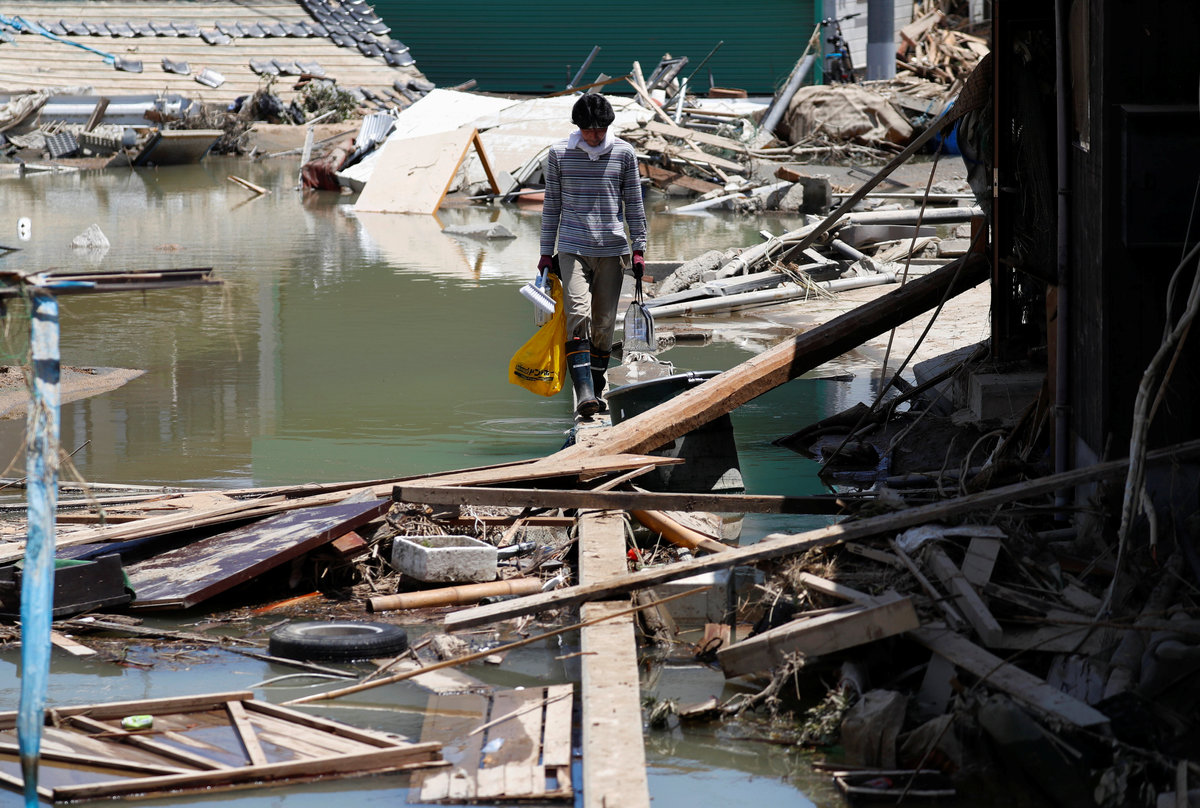 A quarter of flood-prone Mabi district of Kurashiki, sandwiched between two rivers, was inundated after a levee crumbled under the force of the torrent.