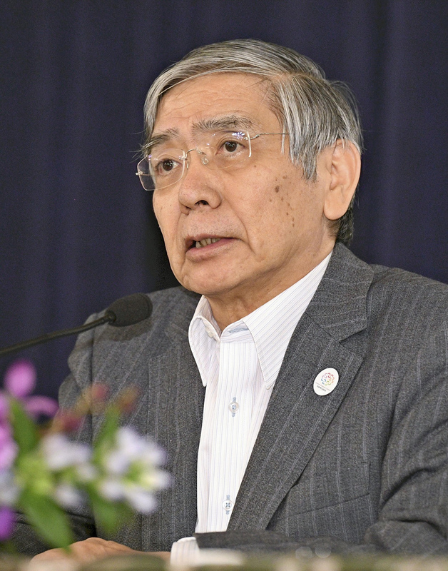 BOJ Gov. Haruhiko Kuroda was asked if the government was losing enthusiasm for the 2 percent target during a press conference after a lecture in Osaka on Tuesday.